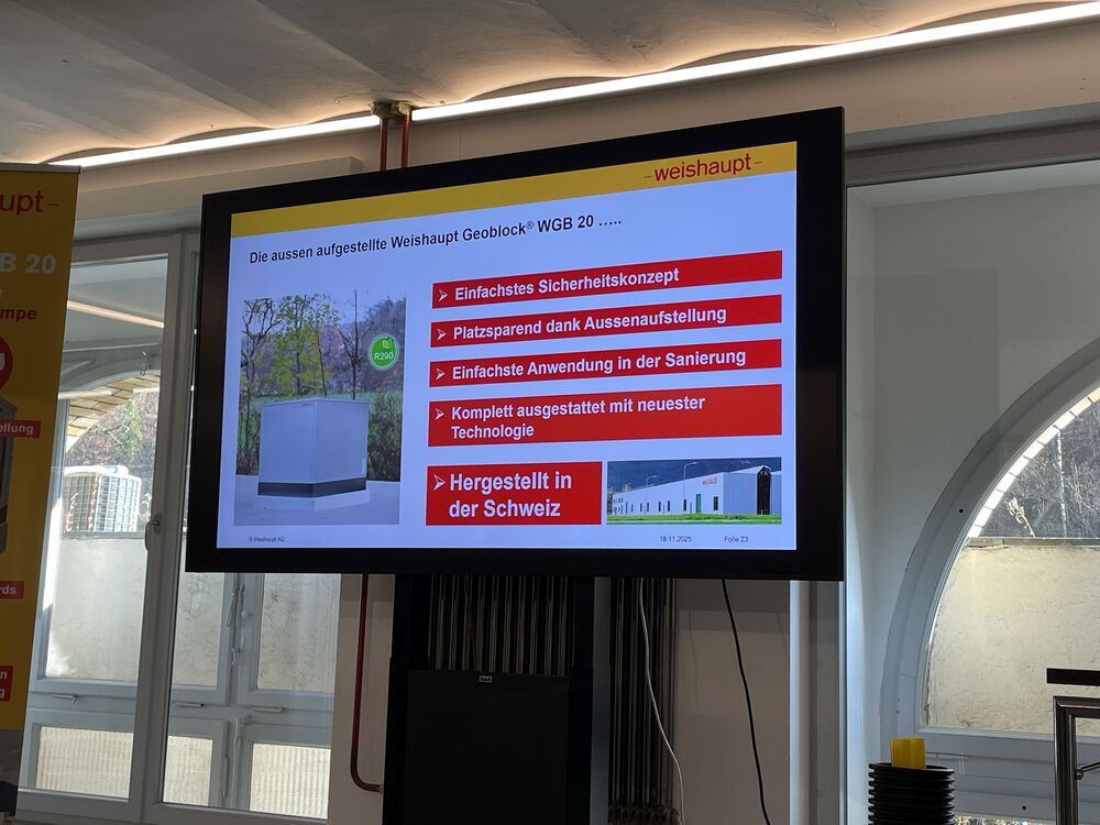 Am Hauptsitz in Geroldswil und an einigen weiteren Orten hat das Weishaupt-Team die neue Sole/Wasser-Wärmepumpe Geoblock® WGB 20 vorgestellt. In der Bildergalerie unten sind Fotos von der WGB-Produktpräsentation vom 18.11.2025 in der MOTORWORLD im «The Valley», Kemptthal ZH.